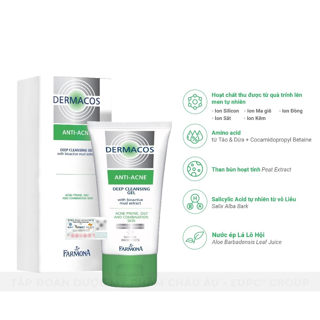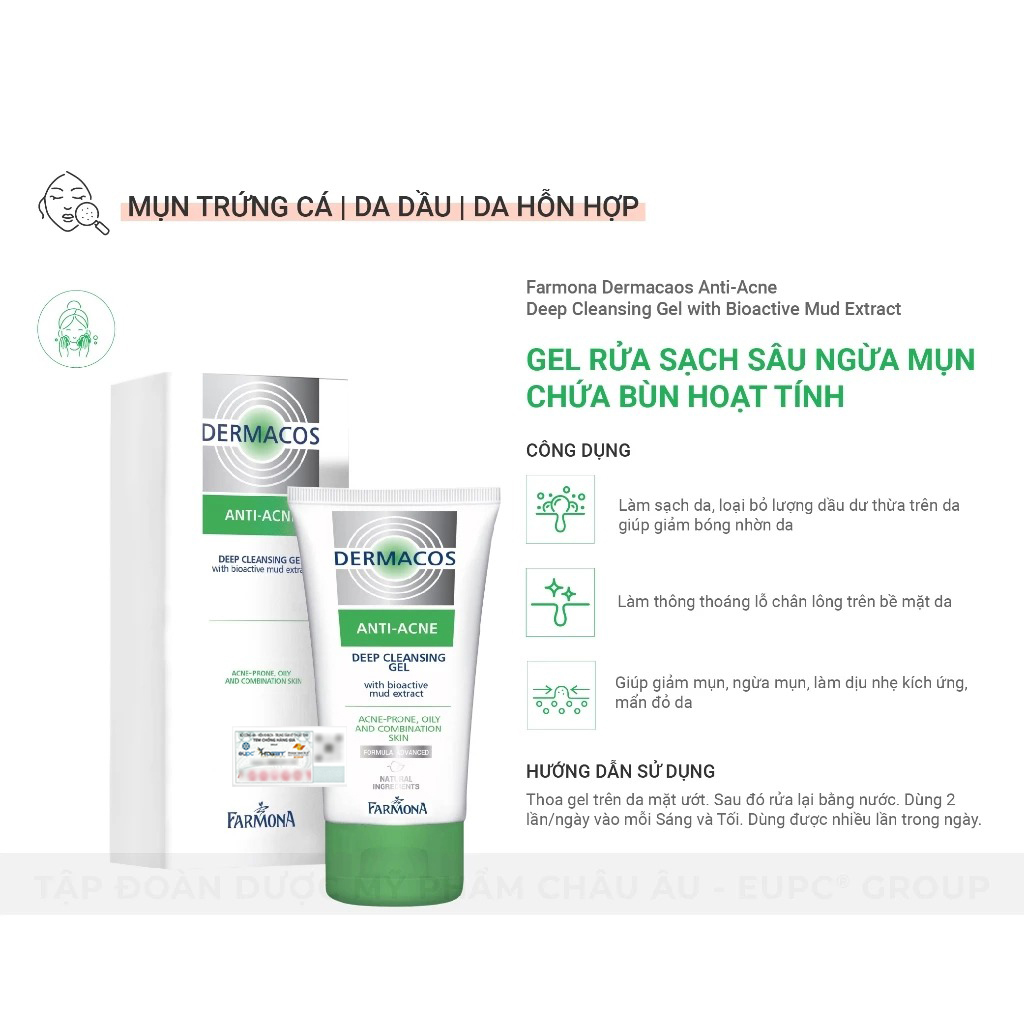 - Tên sản phẩm: Sữa Rửa Mặt Farmona Dermacos Anti Acne Deep Cleansing Gel Làm Sạch Sâu Ngừa Mụn Cho Da Dầu 150ml